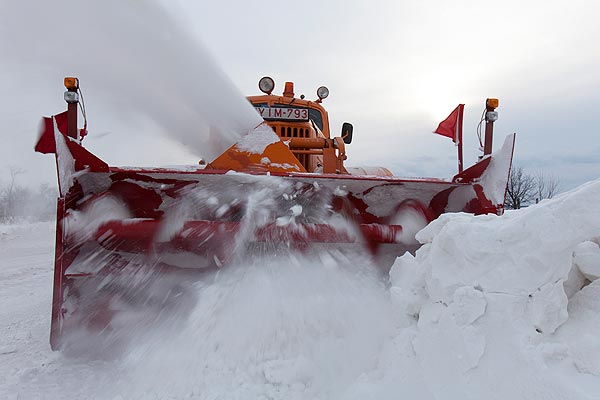 A Hungarian snow blower works its way through the masses of snow on the M1 motorway in March 2013.
