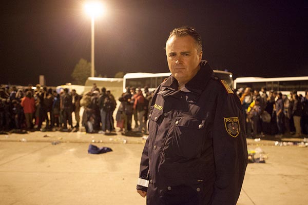 Hans - Peter Doskozil, state police director in Burgenland, Austria, in 2015, during the refugee crisis at the Austrian-Hungarian border crossing in Nickelsdorf.